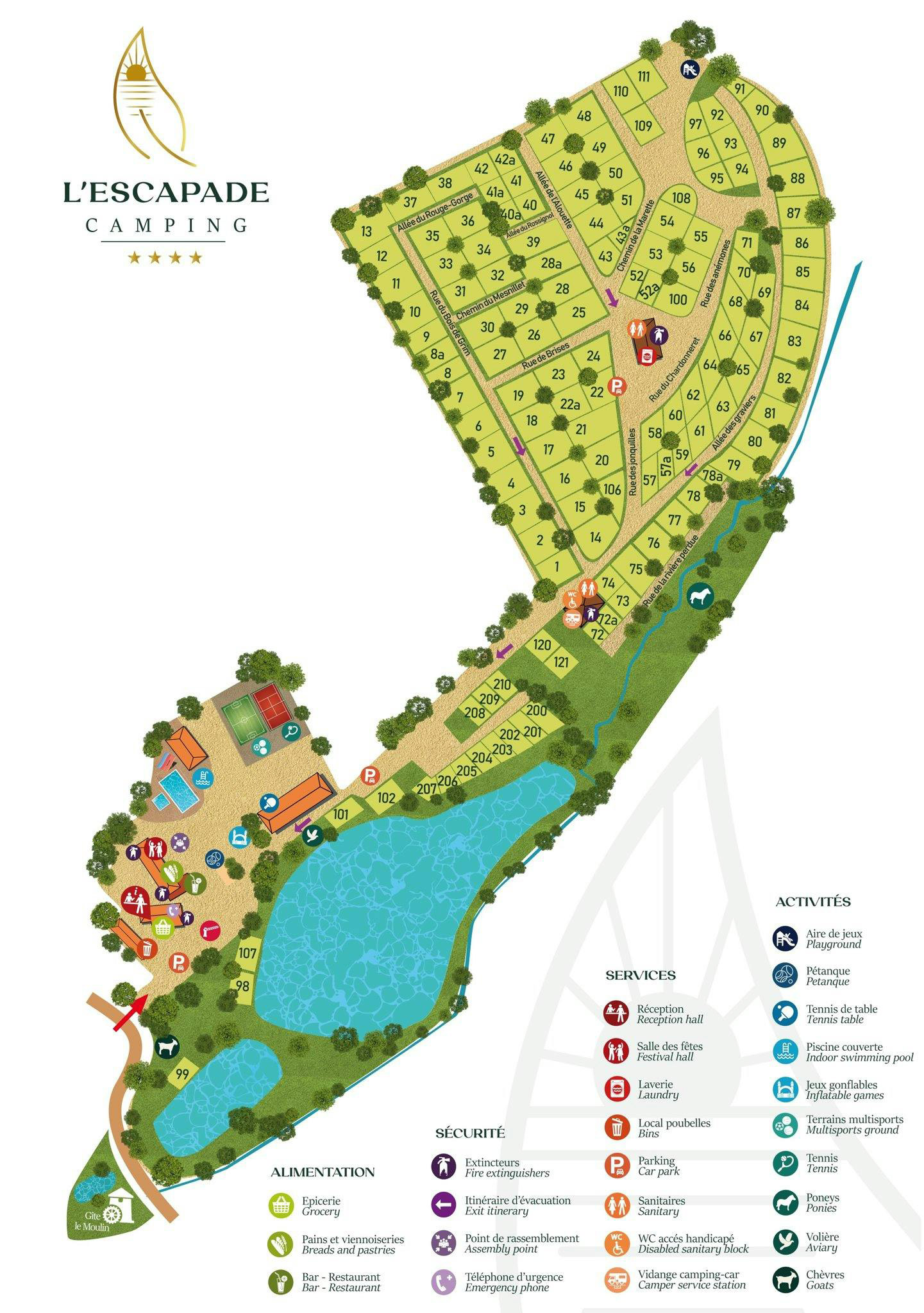 De kampeerplaatsen van Camping L’Escapade zijn ruim, vlak en omringd door groene hagen met genoeg privacy. Op de meeste plekken heb je ook zicht op het meer. Als je nu maar 1 of 2 nachten je tentje op wilt zetten op deze camping dan hebben ze ook een fijn plekje voor je op het trekkersveld. Daarnaast beschikt de camping over een breed aanbod huuraccommodaties: modern uitgeruste stacaravans, knusse chalets en enkele grotere familie cottages die net buiten de camping liggen.