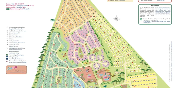 Het vakantiepark biedt een mix van verschillende huuraccommodaties aan. Je kunt er verblijven in moderne mobilhomes en stacaravans, beschikbaar in verschillende indelingen en geschikt voor gezinnen of groepen; veel accommodaties hebben een privéterras en voldoende leefruimte. Zoek je specifiek een kampeerplaats in de Landes streek kijk dan even verder op Campingzoeker. De opzet van de camping met duidelijke zones, paden en veel groen maakt het overzichtelijk en prettig voor gezinnen met kinderen. Via de eveneens schaduwrijke fietspaden bereik je eenvoudig het strand voor je dagelijkse stranduitstapje. Wordt het vandaag zwemmen of misschien wel surfen?