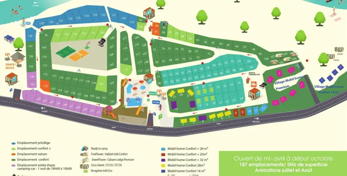 De faciliteiten op de camping zijn eenvoudig maar dat past helemaal in het karakter van de camping. Je zult op deze camping geen animatie of een zwembad vinden maar je geniet hier des te meer van het goede Franse leven. De zee ligt natuurlijk op loopafstand en nodigt uit tot zwemmen en ontspannen op het strand. Verse broodjes als ontbijt kun je vooraf bestellen, je kunt een wasje draaien en er is gratis wifi beschikbaar op het hele terrein. Wat is dit een fijn plekje voor rustzoekers, strand- en natuurliefhebbers. Kinderen gaan zich prima vermaken in de speeltuin en een potje tafelvoetbal of jeu de boules samen is natuurlijk altijd leuk.