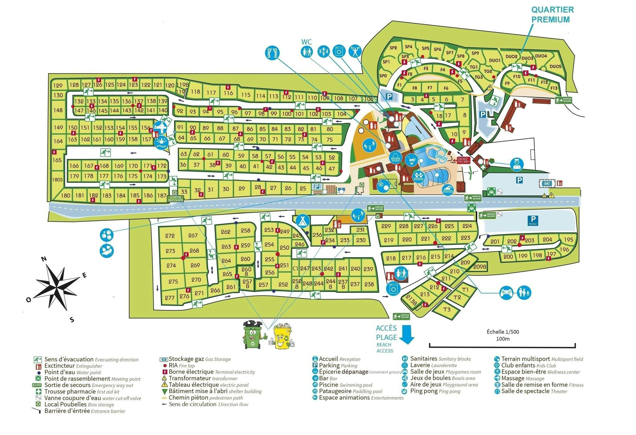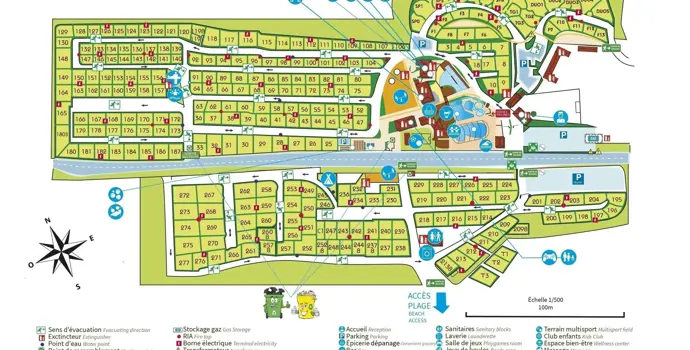 De camping zelf wordt omringd door natuur, heerlijk die geur van het dennenbos met de oceaan op de achtergrond. Je wordt er meteen ontspannen van! Op deze camping van de Yelloh! Village keten ga je alleen huuraccommodaties vinden. Zo'n 250 in totaal met ruime keuze uit lodgetenten en mobile homes. Die laatste zijn er in verschillende luxe niveaus. Voor het nieuwe kampeerseizoen (2026) staan de plaatsing van nieuwe cottage op de planning. Ook wordt er nieuw privé sanitair bij de lodgetenten op palen geplaatst. Ook de receptie is onlangs compleet gerenoveerd en er is een dakterras boven de bar gemaakt waar je prachtig uitzicht hebt over het waterpark.