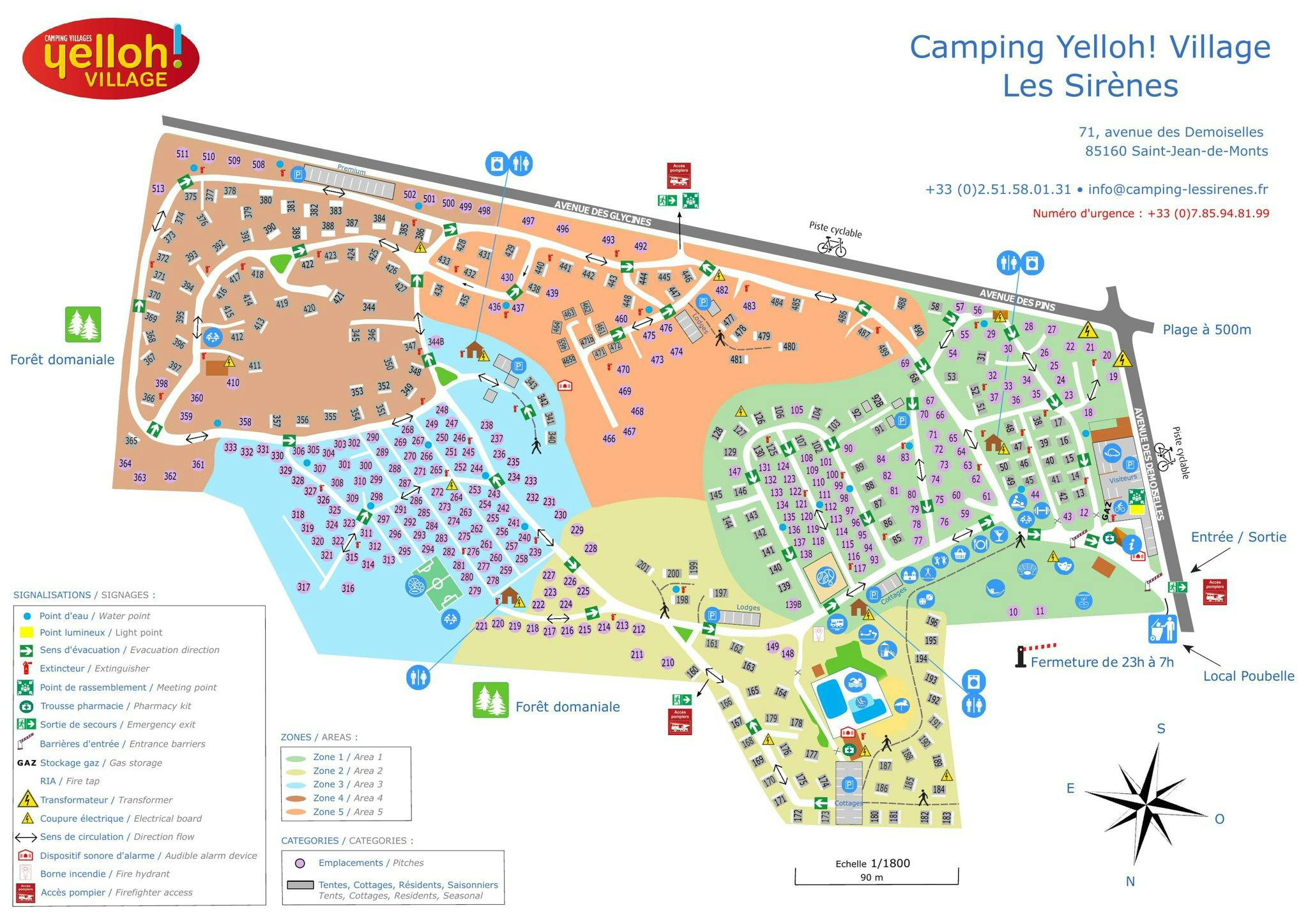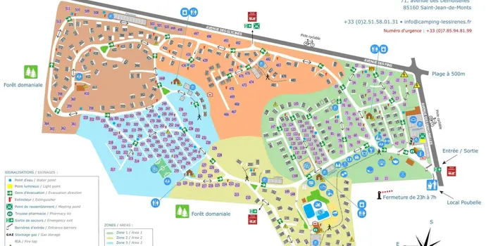 In de regio de Vendee, aan de westkust van Frankrijk, ligt Yelloh! Village Les Sirenes. Om precies te zijn aan de rand van de bekendste badplaats van de regio; Saint-Jean-de-Monts. Vanaf de camping bereik je via een autovrij bospad in 10 minuten het brede zandstrand aan de Atlantische oceaan. De ligging, zo vlak bij zee en vooral dichtbij deze bekende badplaats, maakt de camping extra populair onder gezinnen met kinderen.
