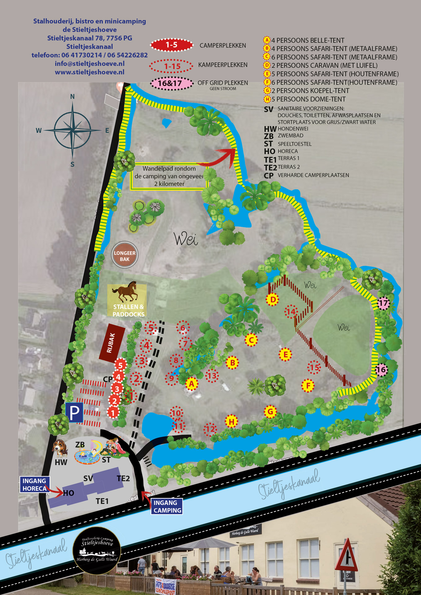 Op het kampeerterrein van camping de Stieltjeshoeve vind je 30 plaatsen. De camping bevindt zich op een voormalige golfbaan. Hierdoor is het terrein mooi glooiend en vind je verschillende watertjes om het terrein heen. Verder is er een paardenhouderij en een bistro op het terrein aanwezig.
