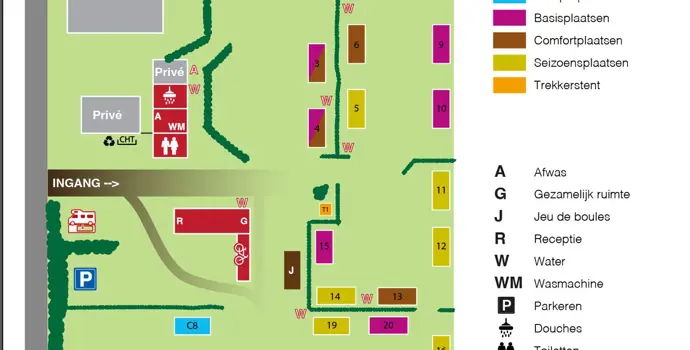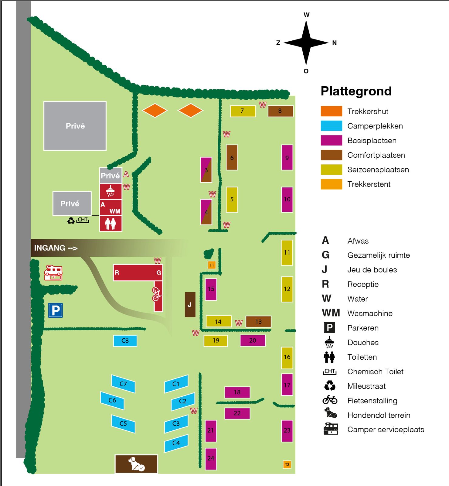 In de gemeenschappelijke ruimte staat de verse koffie en thee al voor je klaar. Ook kun je hier een boek lenen of een spelletje doen, wat een fijne start van je vakantie. Er zijn in totaal 25 kampeerplaatsen, waaronder ook een aantal camperplaatsen en een apart trekkersveld. De kampeerplaatsen zijn gelegen op diverse kleine veldjes met centraal gelegen het verwarmde toiletgebouw. Heb je geen eigen kampeermiddel kies dan voor de tweepersoons toercaravan, een vierpersoons safaritent of een van de twee vierpersoons trekkershutten.
