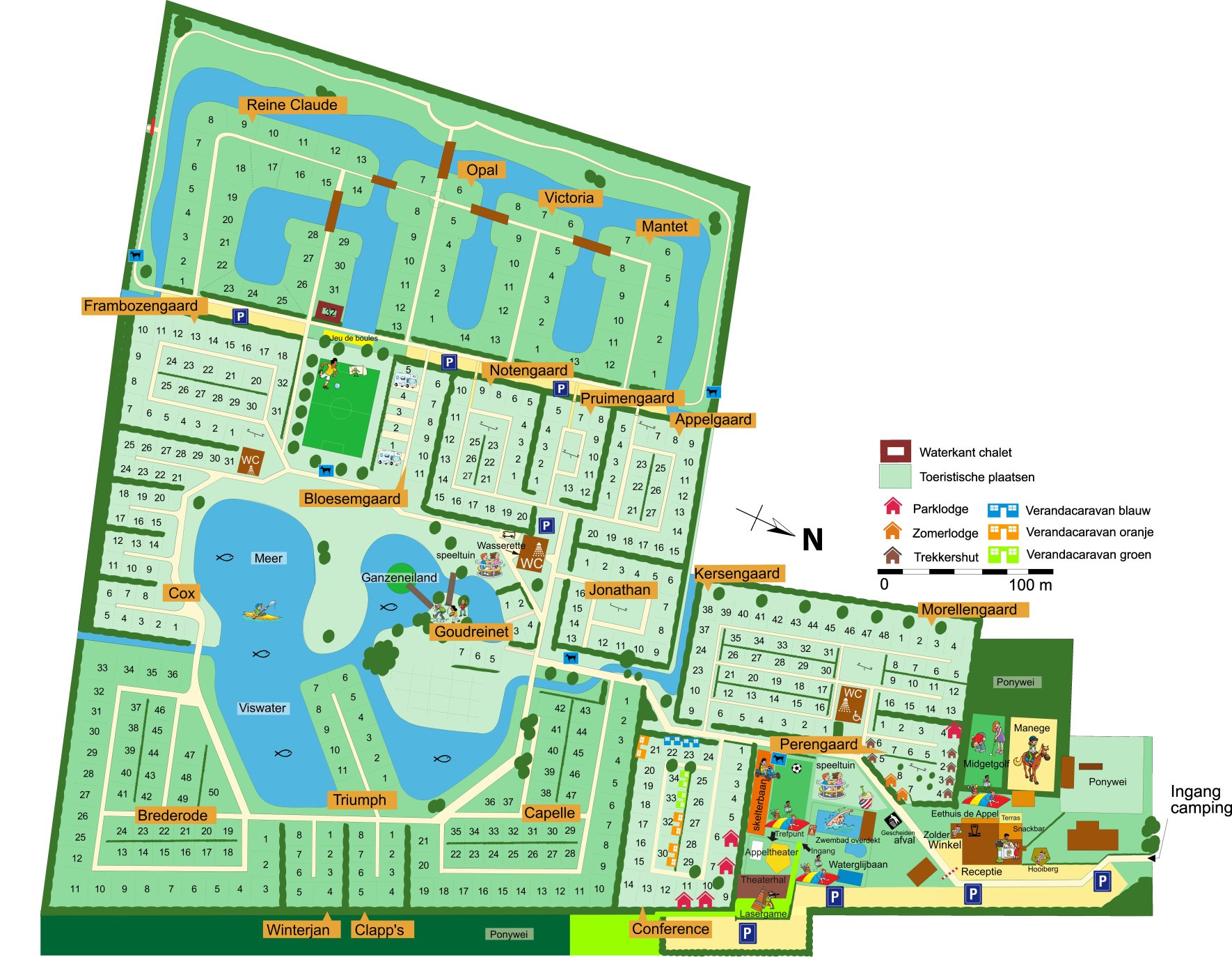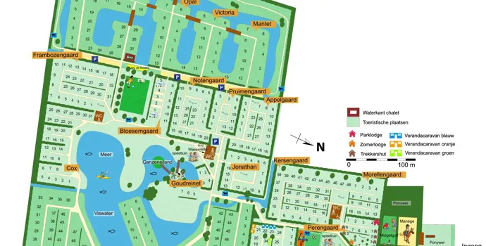 Hier vinden we Camping de Vergarde, een gezellige familiecamping tussen de boomgaarden. Overzichtelijk van opzet zodat ook de kinderen zich snel thuis zullen voelen. De ruime kampeerplaatsen zijn allemaal voorzien van elektra, water, riool en gratis wifi. Voor de verhuur zijn er chalets, lodges en knusse trekkershutten. Met voorkeur boek je een vakantiehuisje pal aan de visvijver. Of je nu met z'n tweeën komt of met het hele gezin, voor iedereen is een geschikt plekje te vinden.