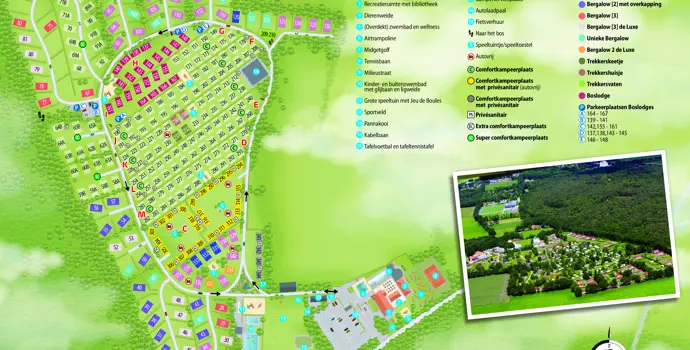 Het park biedt zowel kampeerplaatsen als diverse soorten verhuuraccommodaties aan. Denk hierbij aan een accommodatie aan de rand van het park omgeven door bos of een ruime kampeerplaats. Het toiletgebouw de Molshoop is een gebouw dat je gezien moet hebben op dit park!
