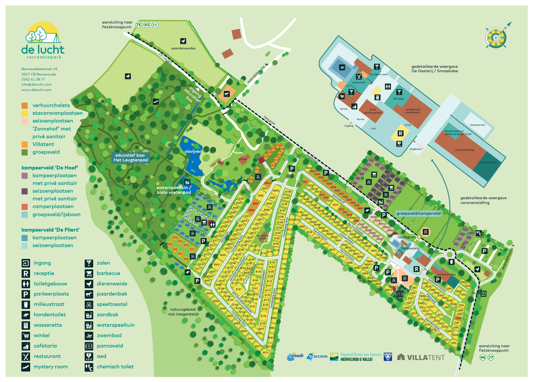 Je kunt hier kamperen, chalets/stacaravans huren en gebruik maken van een eigen stacaravan op huurplaatsen. In de directe omgeving, op de Utrechtse Heuvelrug, vind je meer dan alleen rust en ontspanning. Je kunt hier fantastisch fietsen en wandelen, cultuur snuiven en er is een veelheid aan attracties. Wil je genieten van een compleet verzorgd verblijf? Kijk dan naar de (fiets)-arrangementen die worden aangeboden. Ontdek het zelf en ervaar De Lucht als een verademing!